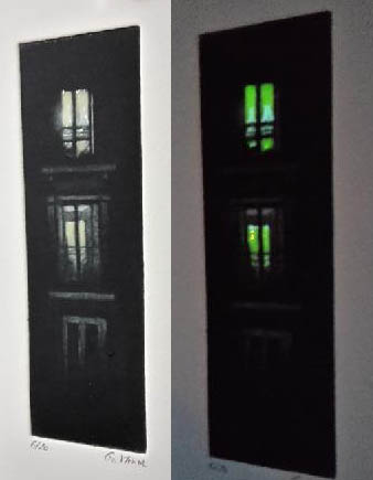Deux versions : une en noir et blanc et l'autre avec des pigments phosphorescents - les fenêtres s'illuminent dans l'obscurité.